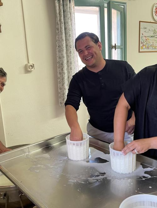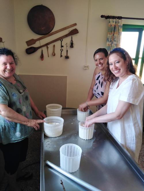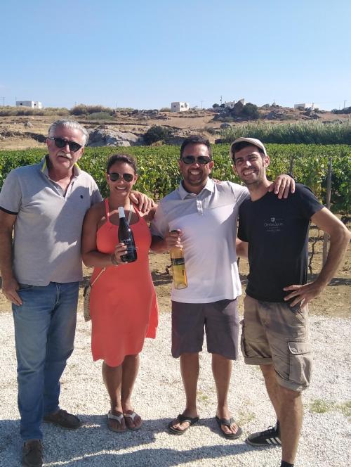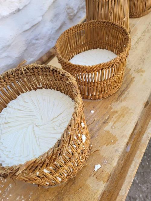 Our best selling experience provides a great opportunity to meet the locals, be immersed into the authentic Naxian life, make cheese, taste homemade delicacies, go on a vineyard tour, taste delicious local wines and learn about wine making in the island of Dionysus, the God of wine! In a small cheese farm located deep into mainland Naxos, you’ll get a taste of what locals all over Naxos really do in their everyday lives and how the renowned Naxian cheeses are made. In this hands-on, off the beaten path experience, you’ll get to meet lovely farmers, feed the farm animals, observe and help the owners make the “arseniko” signature cheese. You will get to taste all kinds of local goodies made with products taken from the farm, drink the owner’s house wine and exchange life experiences over the family table. Next up, a beautiful, family-run vineyard, where the owner will welcome you and show you around his dear vines while commenting on terroir, indigenous varieties and traditional vs modern methods of wine making during a 20-30min vineyard tour. Then, the passionate and deeply knowledgeable wine maker will guide you through an intimate tasting of different local wines and grape products, paired with more nibbles and Naxian cheese, including the famous “graviera”.