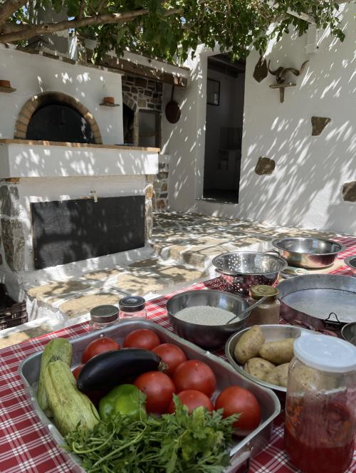 A unique traditional cooking experience that takes place in a small scale dairy farm, located on a hilltop with breathtaking views to the sea as well as to the farming lands of southwest Naxos. In this farm you’ll have the opportunity to cook on fire and take flavors to a whole new level! Enjoy a fully traditional meal of your choice (meaty or vegetarian), made with fresh ingredients and cooked on a wood fire oven. Finally, everyone will sit down underneath the olive tree to rest and enjoy the feast. Homemade dessert and wine are on the house!